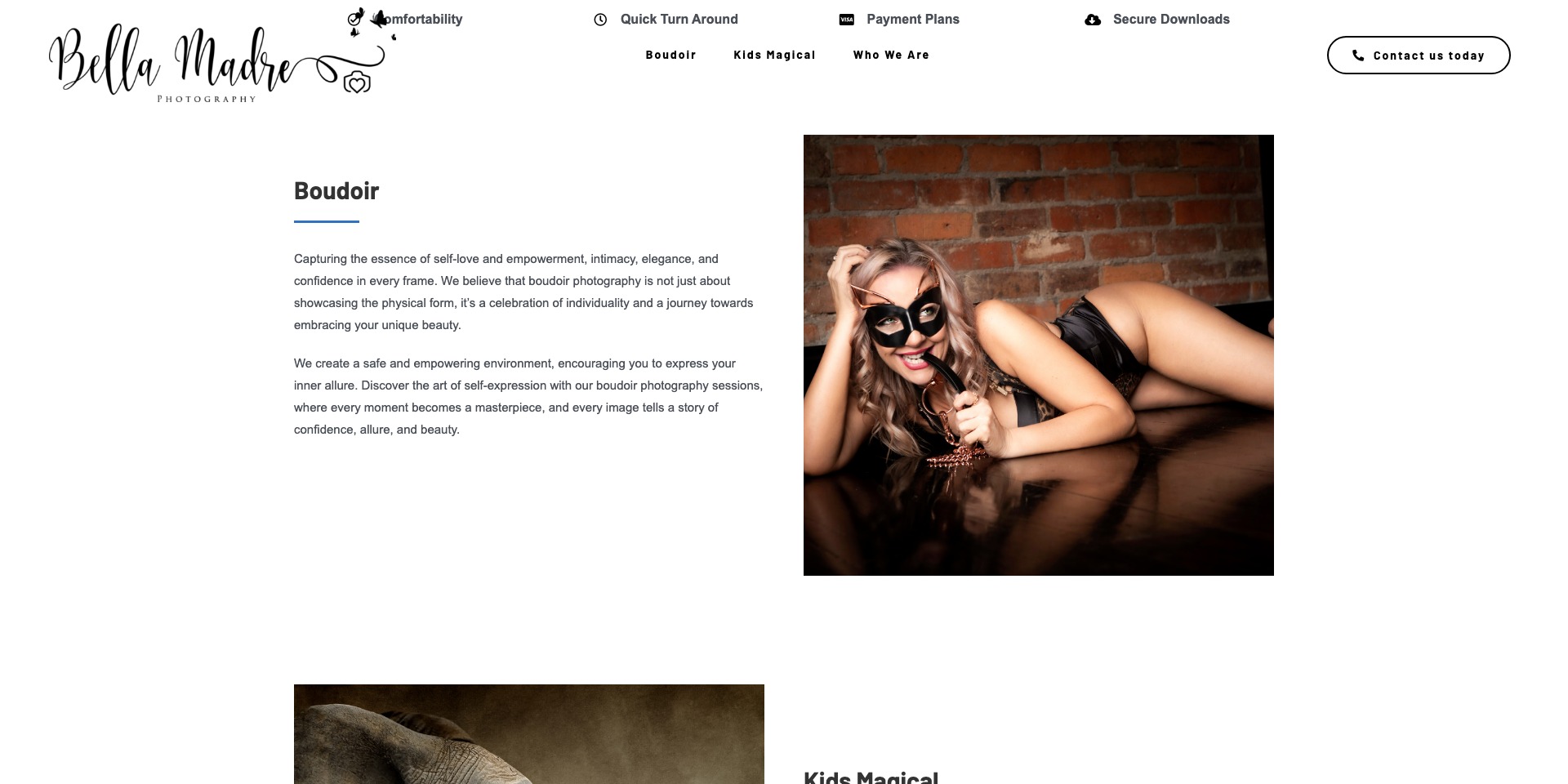 Rachel runs Bella Madre Photography, specialising in boudoir and kids photography. Her work speaks for itself, but she had no website to show it. No online portfolio, no booking system, no way for potential clients to find her and see what she does.